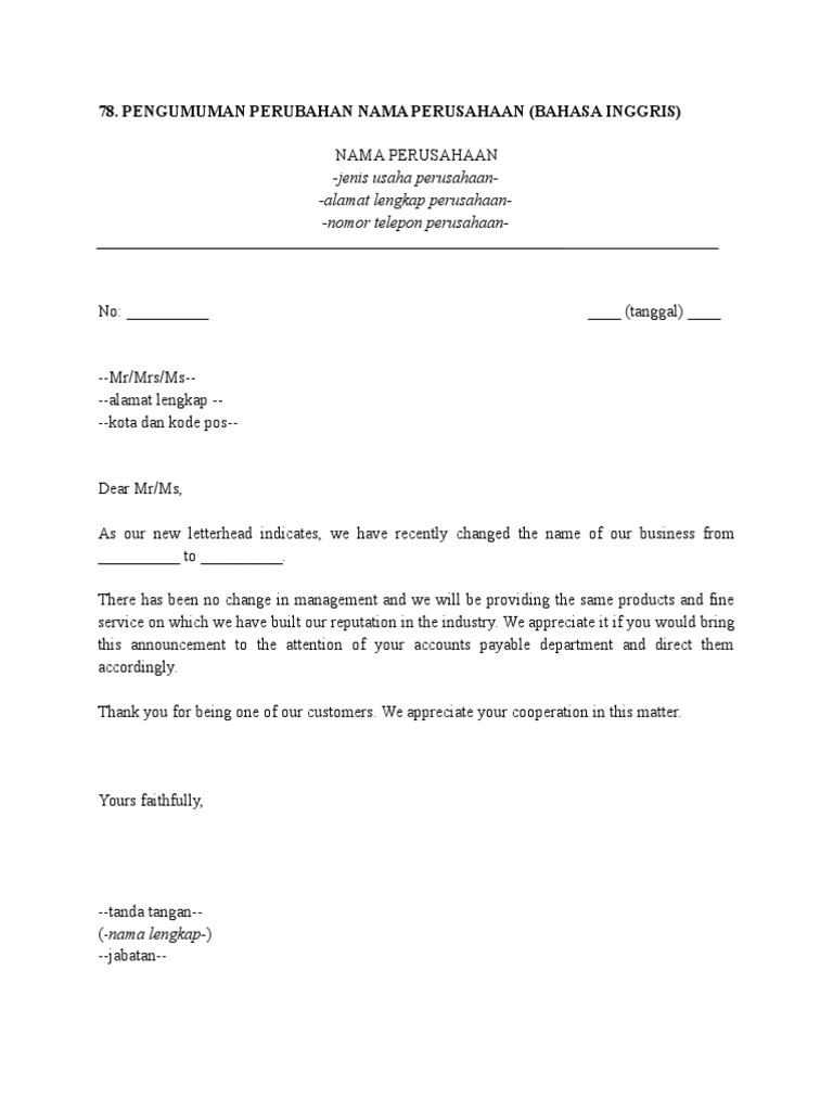 Pengumuman Perubahan Nama Perusahaan Bahasa Inggris Pdf