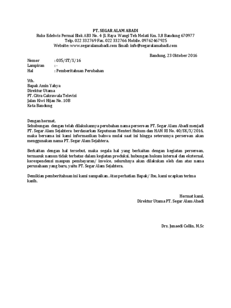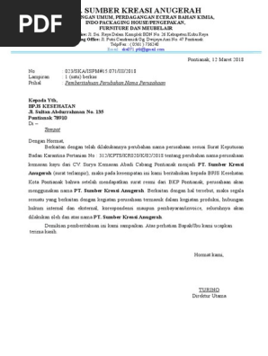 Contoh Surat Perubahan Nama Perusahaan Swasta Pdf